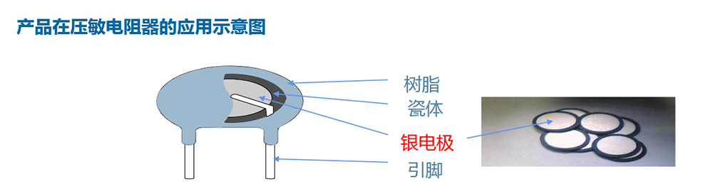 產(chǎn)品為灰褐色膏狀流體,應(yīng)用于氧化鋅壓敏電阻器、NTC熱敏電阻器和壓電陶瓷等電子元器件,作面電極用。漿料適用于絲網(wǎng)印刷工藝。不含鉛、鎘、六價(jià)鉻等禁用物質(zhì)。